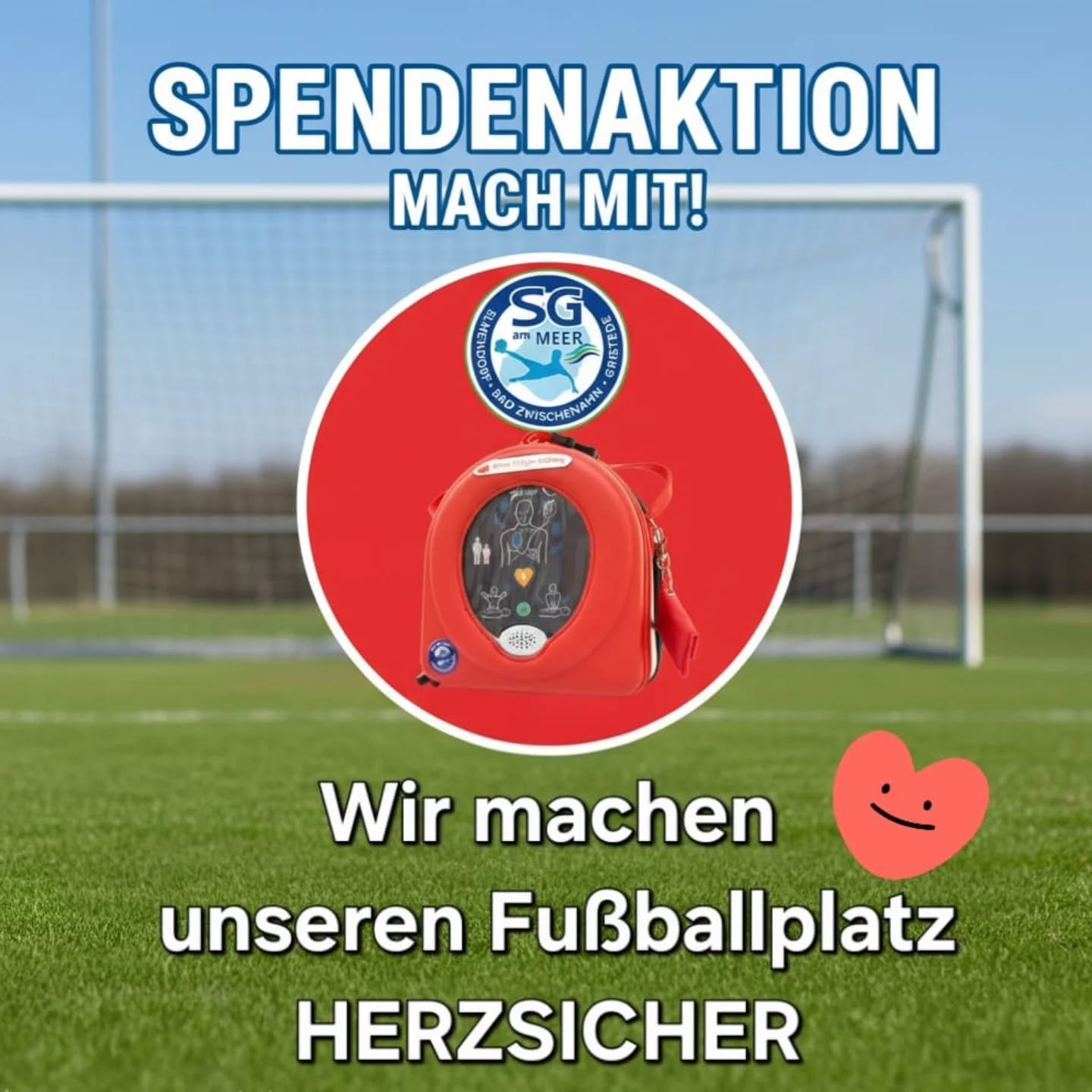 Wir, der Förderverein, sammeln für einen AED (Automatisierter Externer Defibrillator), um unseren Platz zur "Herz-Sicheren Zone" zu machen. Ein AED kann im Ernstfall Leben retten – für alle auf dem Gelände!